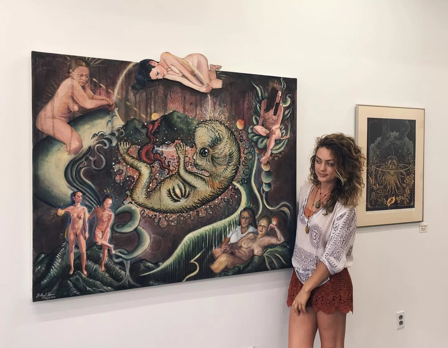 She works in two distinct styles: conceptual representational art and abstract flow. Her abstract pieces are explorations of imagination, materials, and the fluid state of creativity, emphasizing the importance of play and joy. In contrast, her conceptual works delve into themes of the human condition, death, rebirth, and duality, offering a deeper, thought-provoking narrative.